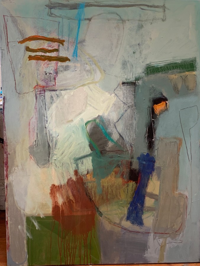 Monday studio time spent on these 2 large guys. More paint, varied brushstrokes, soft pastel drawing all make for interesting work.
