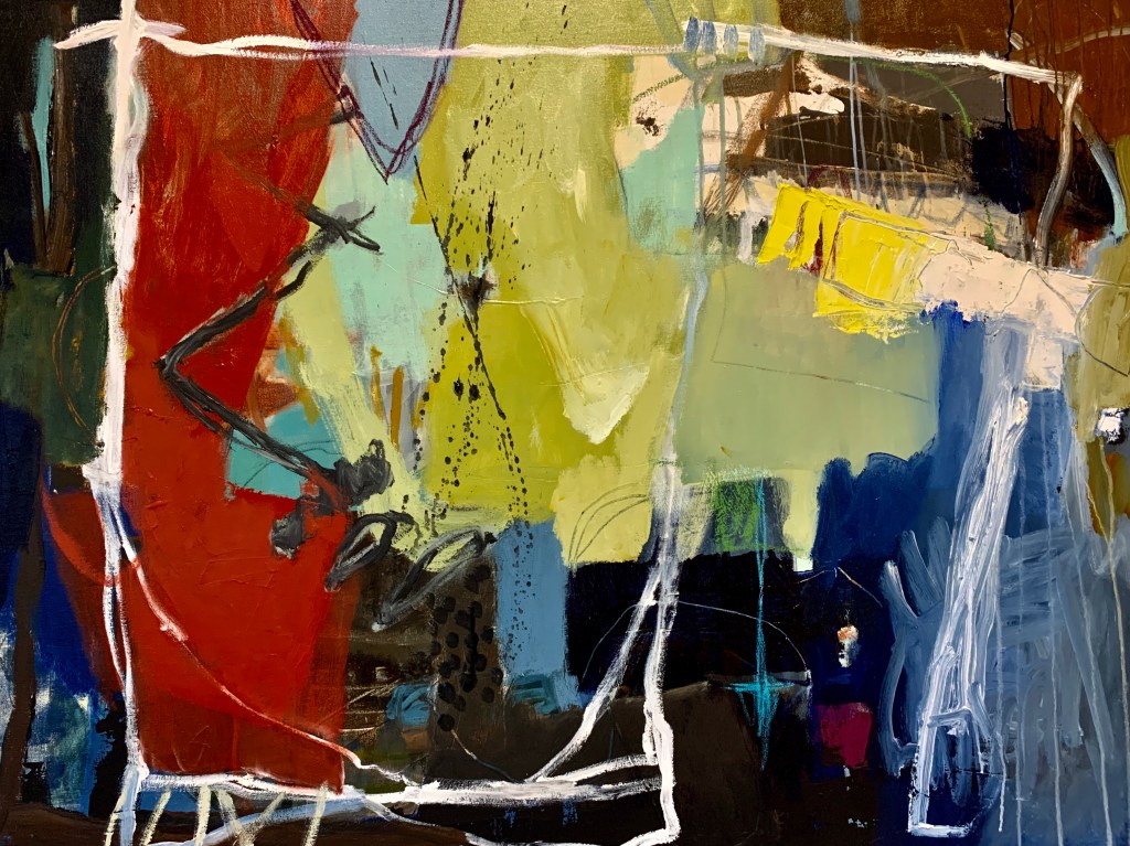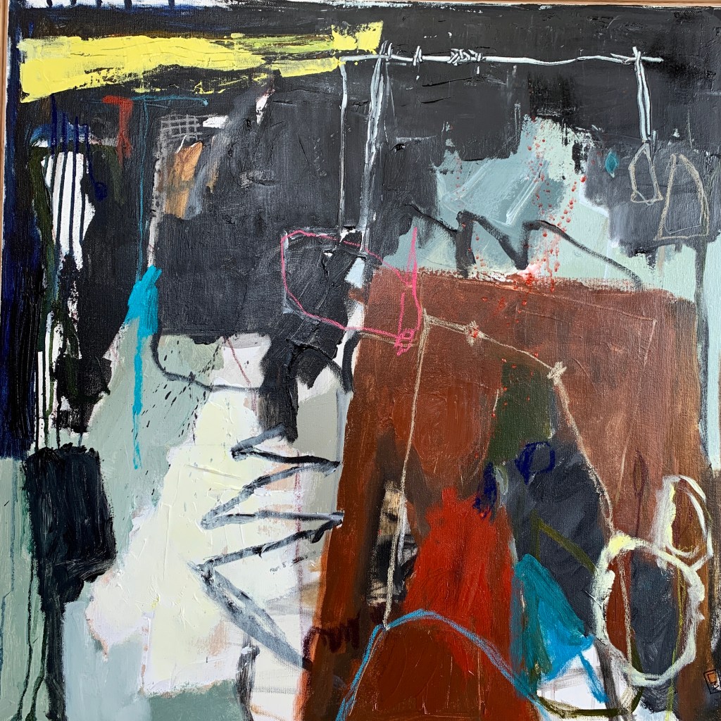 Employing interesting colours in layers . Hours pass so quickly in my studio. Where my head is I just can’t say but it’s my favourite space.