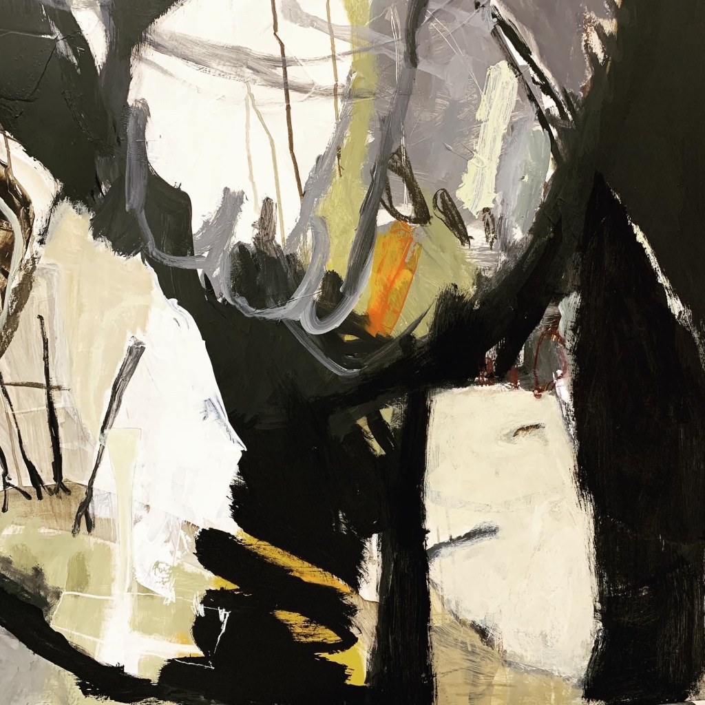 Bold with limited colour, these 2 works are strong and deliberate. Greys have always been a trademark for me….endless depth and possibilities