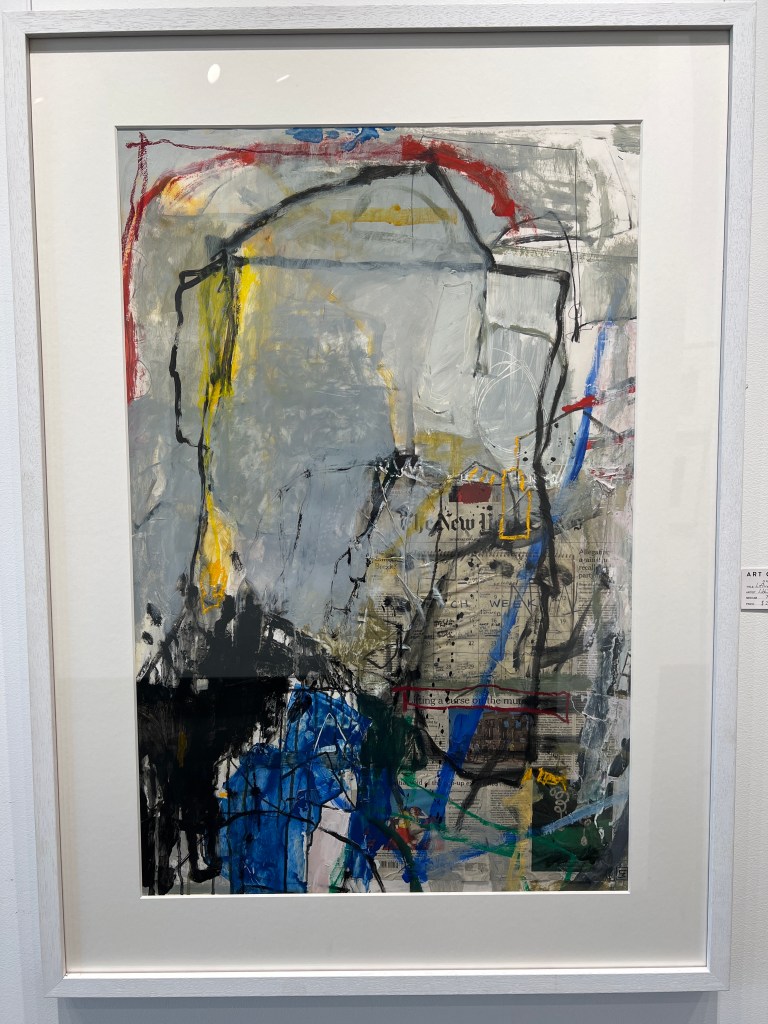 Framed work on paper using collage and other mixed media. 92x126cm. Hanging during my SoloExhibition at Art Gallery on Darling, Balmain 10-15/5/22. This is a brave bold piece