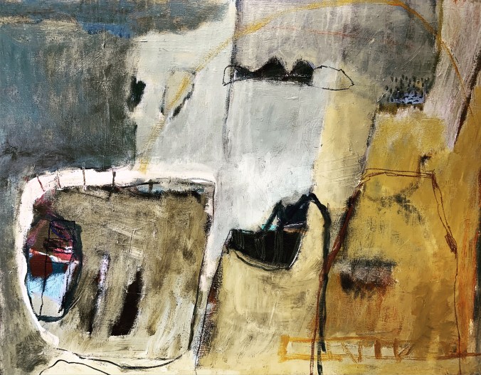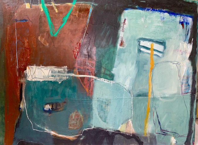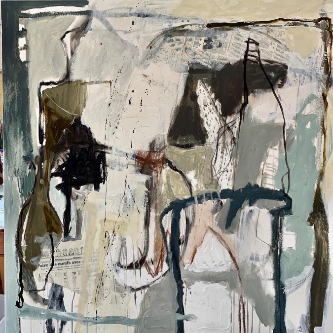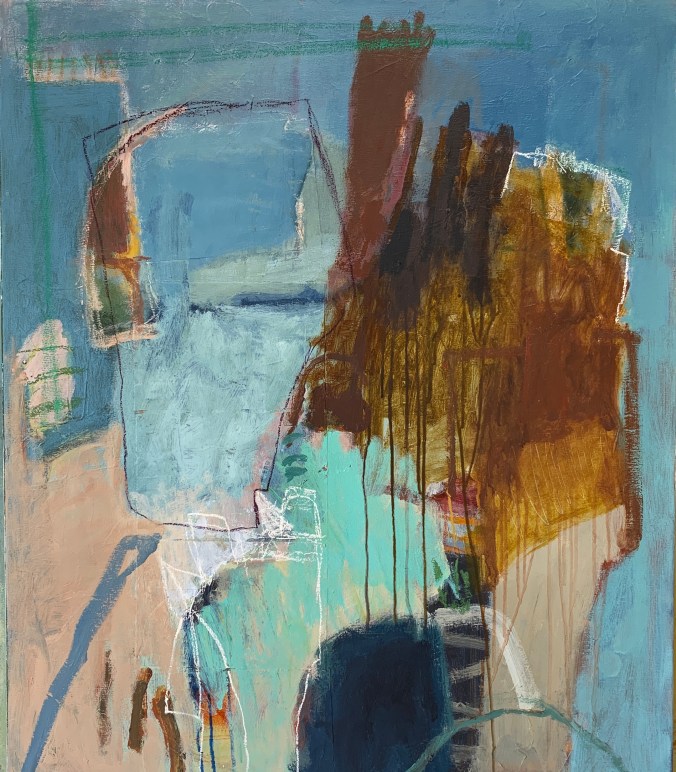 Works on canvas with mixed media… big bold squares with limited palette . I’ve used oil paint with different mediums and knives. After a period of bright colour, I welcome a more restricted palette