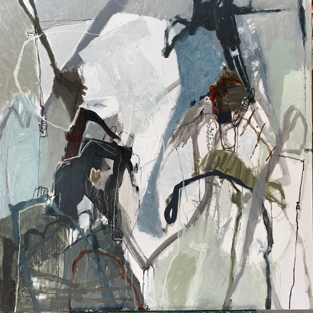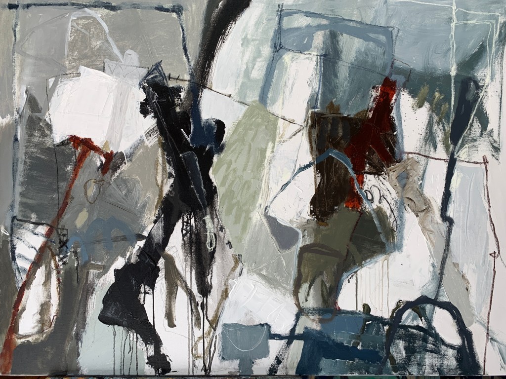 I often work in a series and have 3-4 large canvases fighting for survival. Such a friendly dual though. These 3 works are free and lyrical ….speaking and singing together telling their own stories