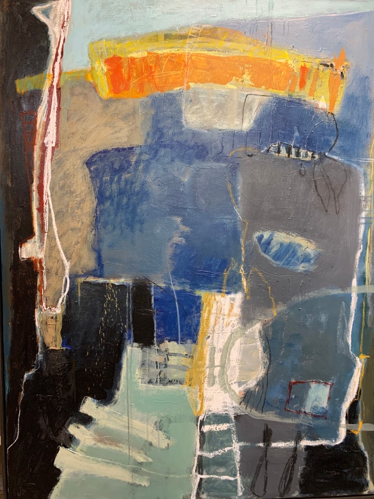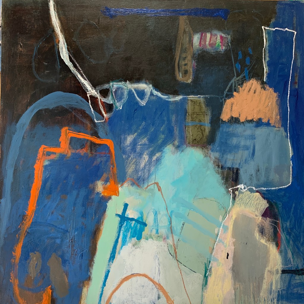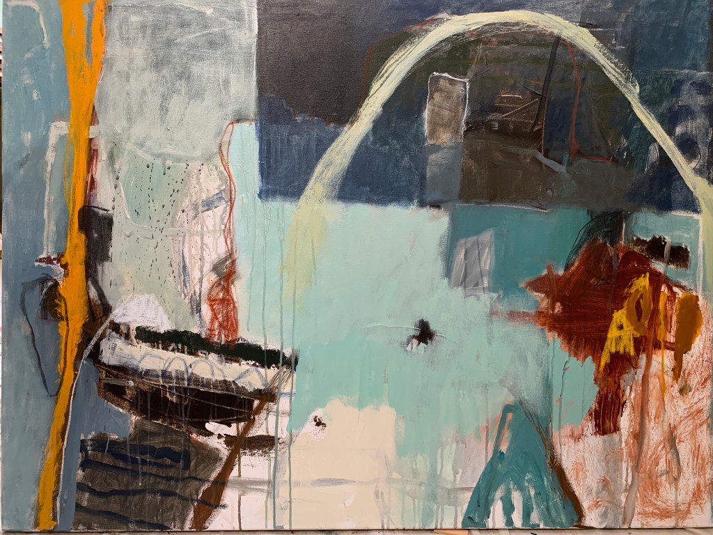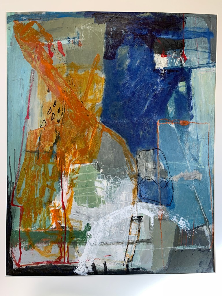 Painting at home during Covid19. I’m painting on paper in a very loose and gestural manner these days. Limited palette is always my preference and today I used cobalt, sepia, raw umber black and white….a pleasing combination I think. 2 brown soft pastels were a good accent. Dimensions 60x80cm each