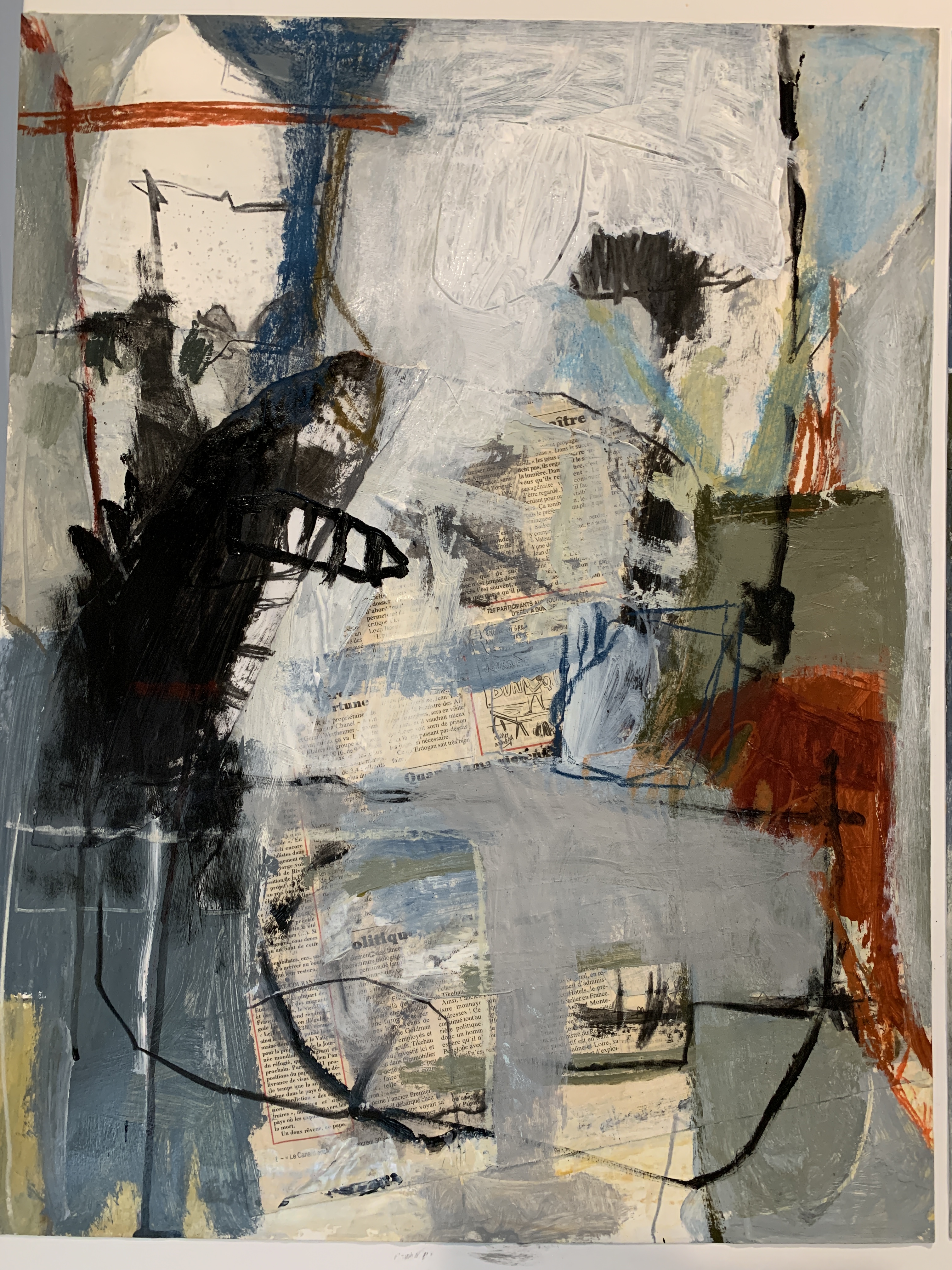 50 x 65cm work on paper using French newsprint collected in Paris ….seems forever ago. However this work and his friend remind me how blessed I have been in the past….being able to paint abroad and make so many wonderful friends.